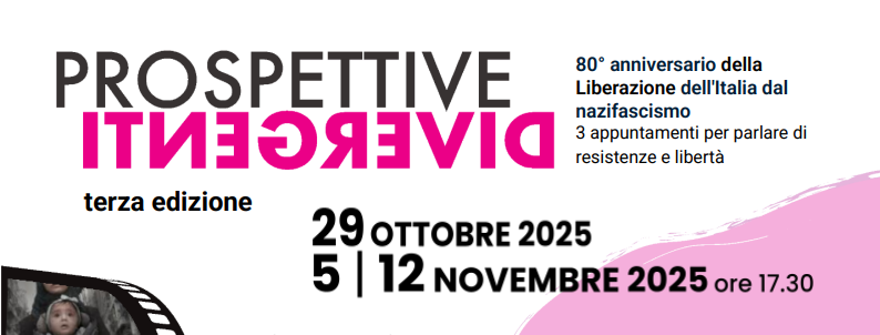 Terza edizione di "Prospettive divergenti", una serie di lungometraggi incentrati sulle resistenze e sulla libertà, in occasione dell'Ottantesimo anniversario della Liberazione dell'Italia dal nazifascismo, promosso da Consigliera regionale di Parità, Coordinamento Donne Spi CGIL Valle d'Aosta, Dora Donne Valle d'Aosta, Donne Anpi Valle d'Aosta e Associazione Diritto al Futuro, in collaborazione con Framedivision.